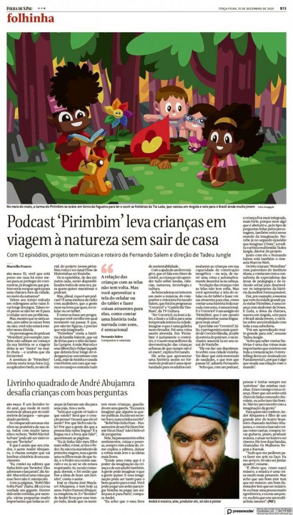O jornal Folha de S. Paulo divulgou a obra “Robô não solta pum”, publicada pela Editora Saíra