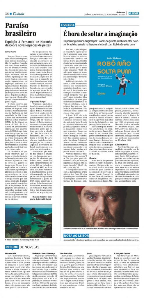 O jornal O Hoje impresso divulgou a obra “Robô não solta pum”, publicada pela Editora Saíra