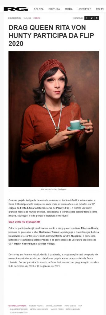 O site RG da Uol divulgou a participação da Saíra Editorial na Flip